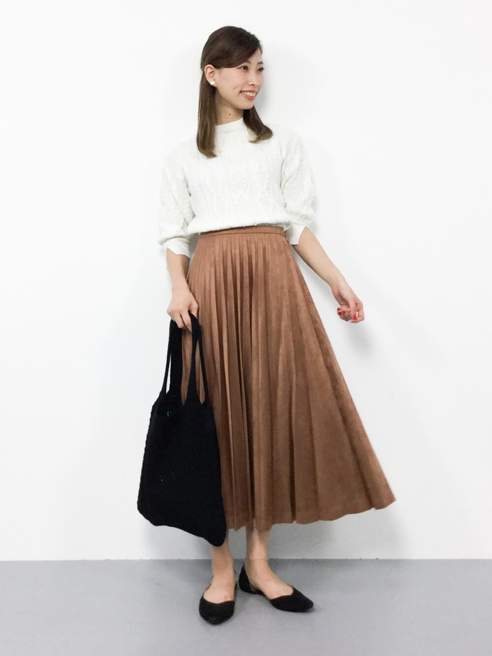カジュアル秋コーデ◎ 程よくフィットするトップスは 伸縮性がしっかりあるので 着やすいですよ(^O^) やや光沢のあるフェイクスエードのスカートは 柔らかな生地で滑らかな肌触りです( ˆoˆ )/