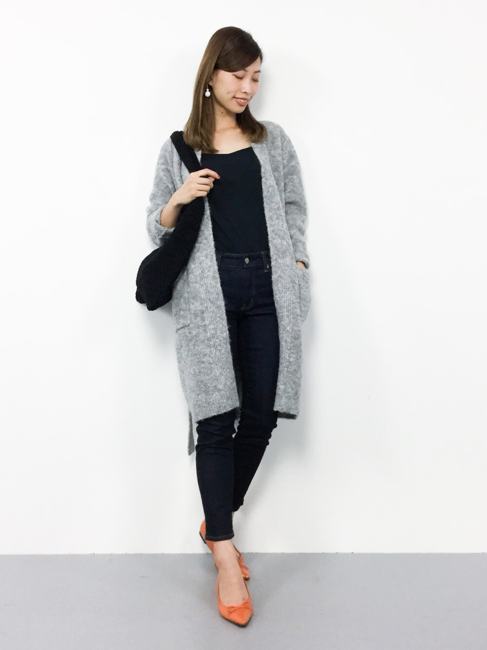 カジュアルニットカーディガンコーデ◎ やや厚みのあるニットカーディガンは ゆるシルエットでライトアウターに オススメの1枚(^O^) ニットトートは軽くて 持ちやすいです♪
