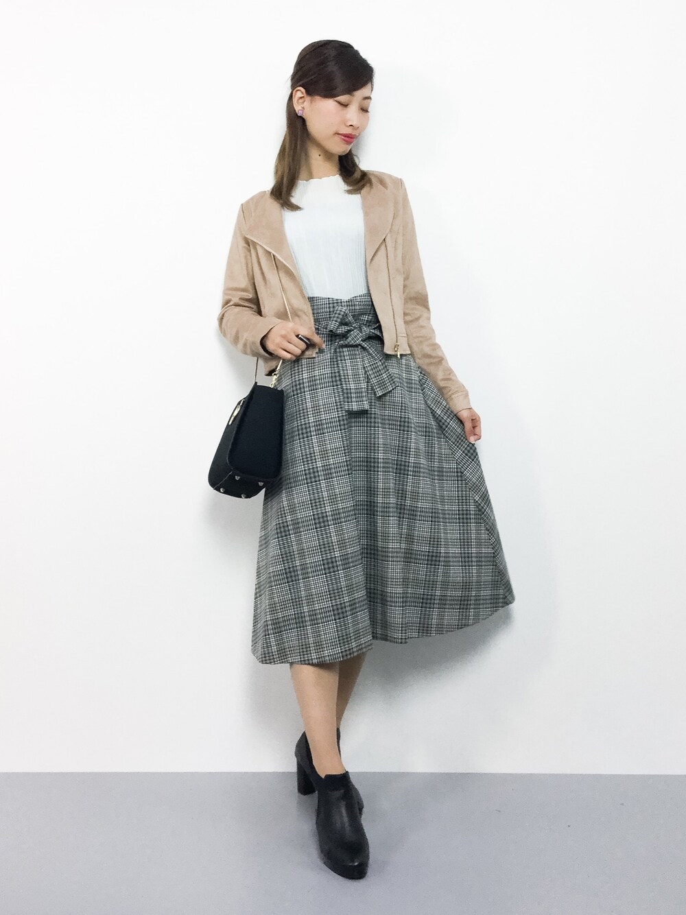 秋コーデ◎ ジャケットはシンプルな定番型で 生地がしっかりしているので、 長年愛用出来るアイテムだと思います♩ フレアスカートはゆったりとした作りで 生地が柔らかく穿きやすいです(^O^) グレンチェック柄でトレンドアイテムです♩
