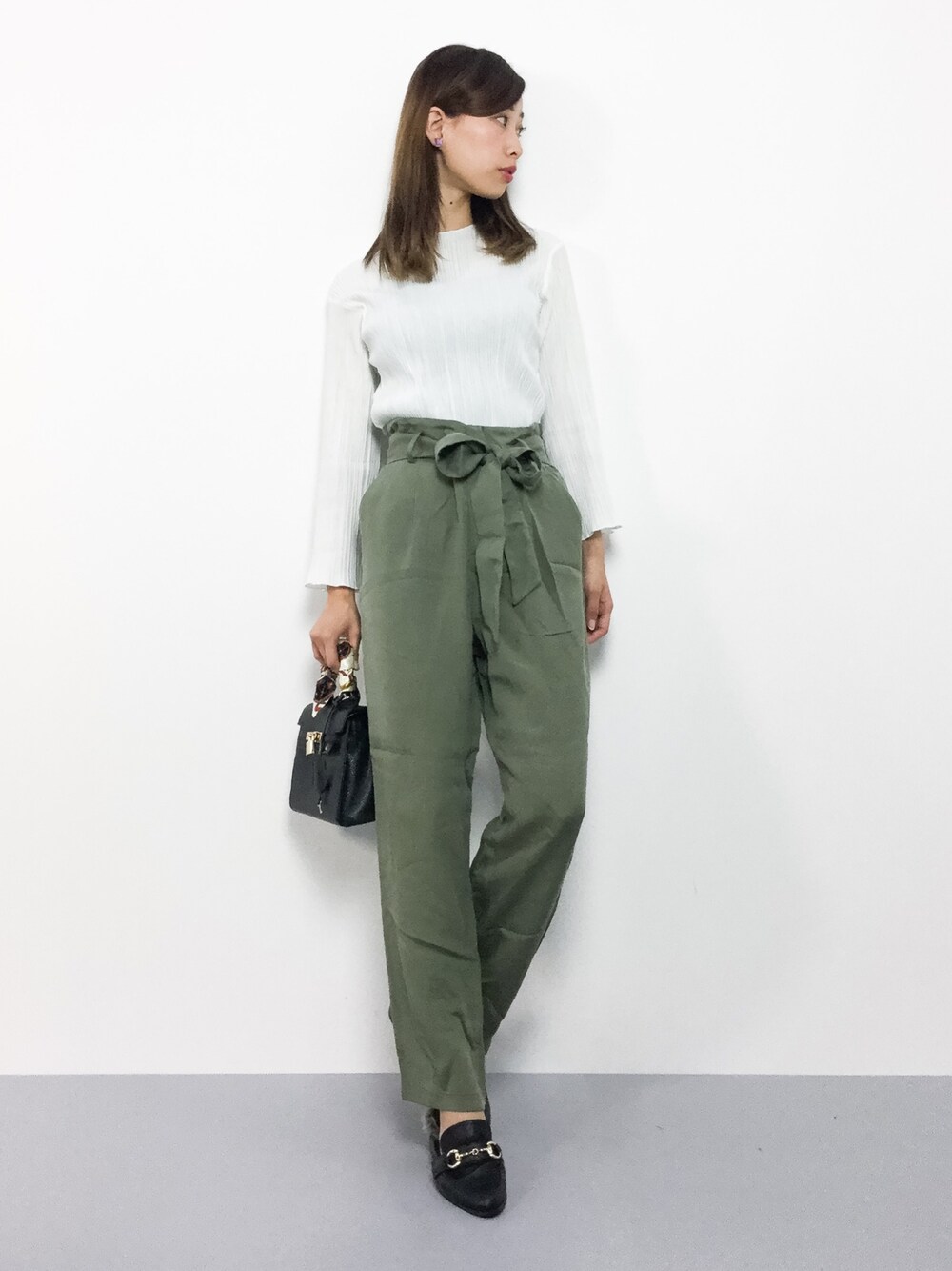 カジュアルコーデ◎ ゆったりしたシルエットのトップスは ボトムスを選ばずに着ていただけます♪ パンツは程よいワイド感で穿き心地よし♪ シンプルなアイテムなので 合わせやすいですよ(^O^)