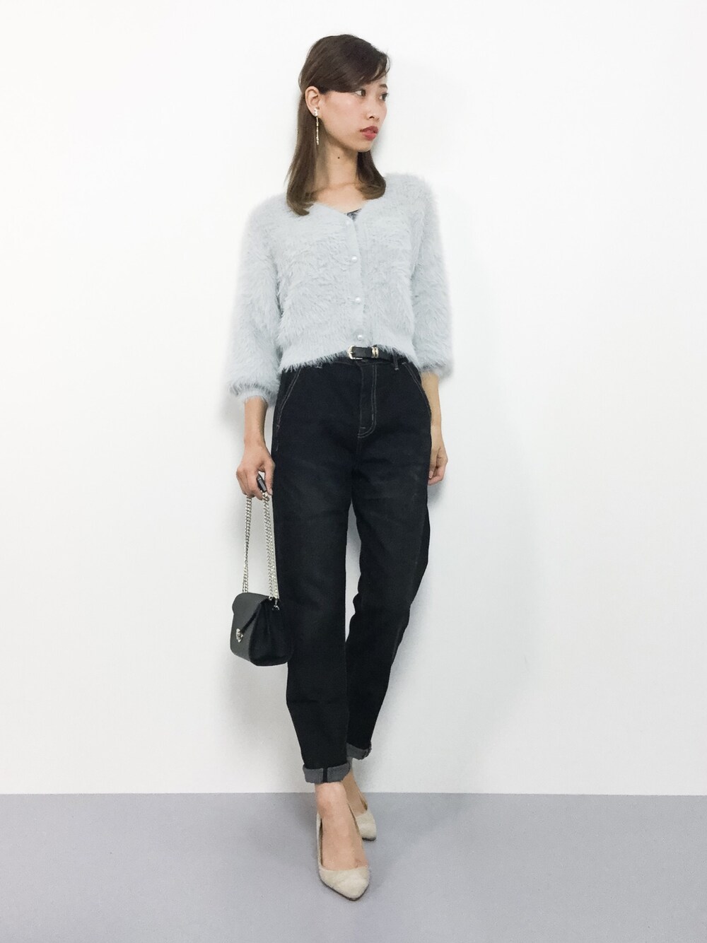 KIIのカーディガン/ボレロ「モンスターシャギー前後2WAY」を使ったコーディネート