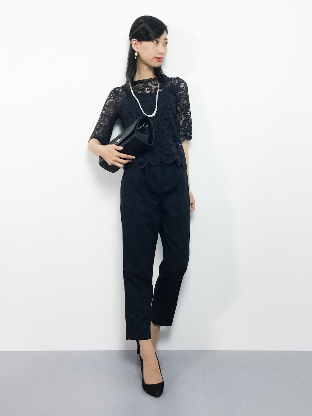 KIIのパンツドレス「レース五分袖トップス&スラックスのセットアップ結婚式パンツドレス - 二次会・成人式・同窓会・謝恩会・お呼ばれ対応フォーマルパーティードレス」を使ったコーディネート