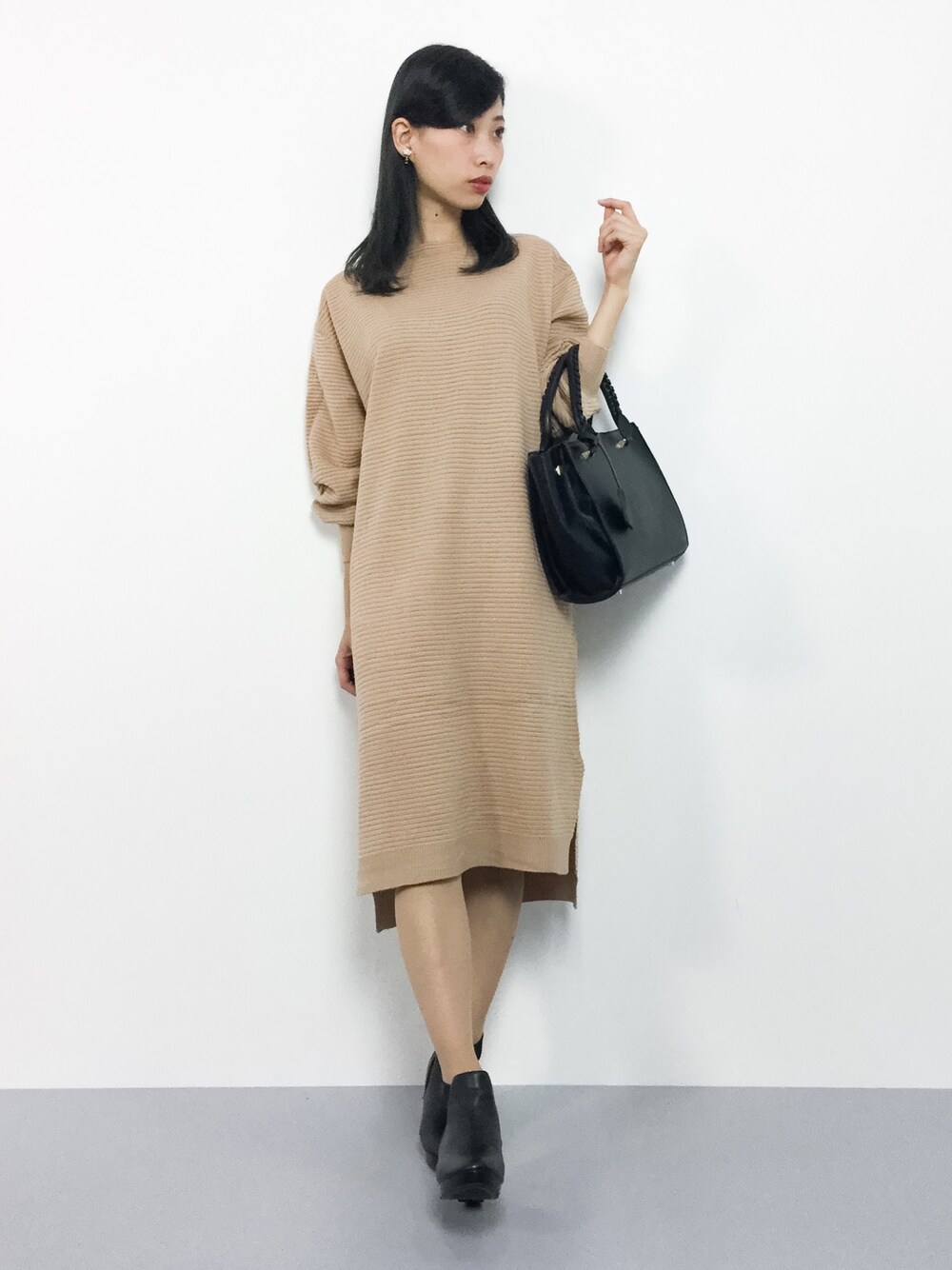 オトナカジュアルコーデ◎ フェミニンな雰囲気のニットワンピースには サイドゴアブーツでカジュアルさをプラス♩ 締め付け感が無くラクな着心地ですよ(^O^)
