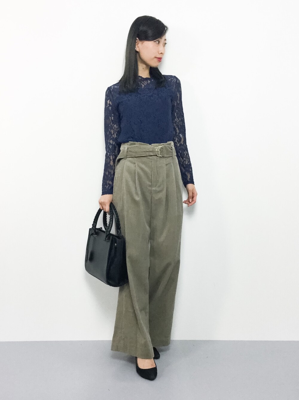 秋色コーデ◎ トレンドのレーストップスは シンプルな形で着回しやすさばっちり♩ コーデュロイ素材のワイドパンツは穿くだけで 季節感のでるアイテムです( ˆoˆ )/