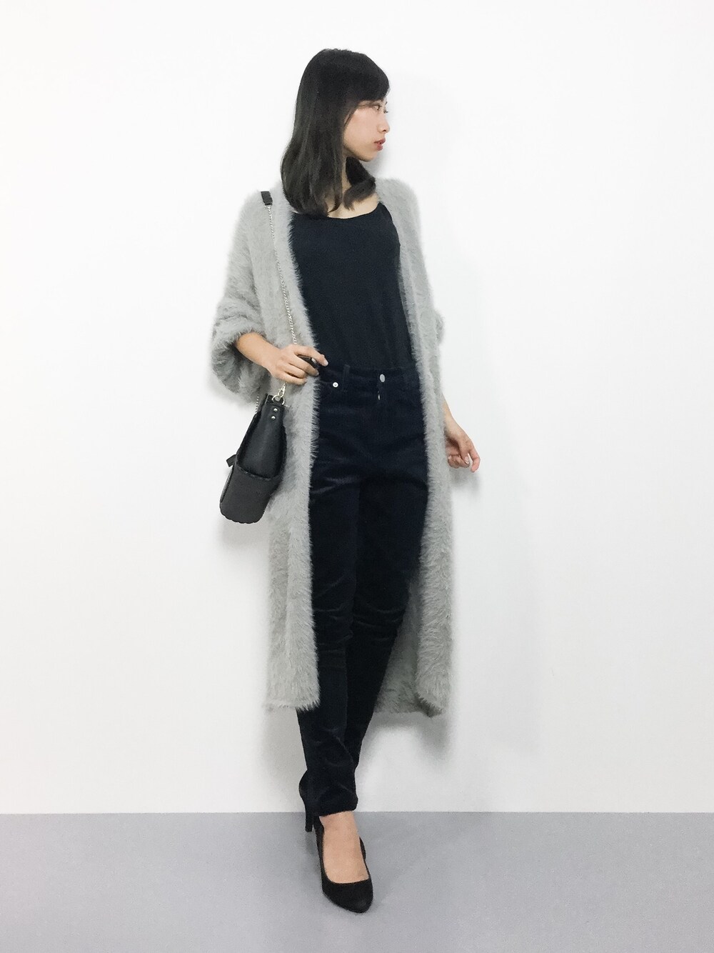 KIIのカーディガン/ボレロ「フェザーニットロングカーディガン」を使ったコーディネート