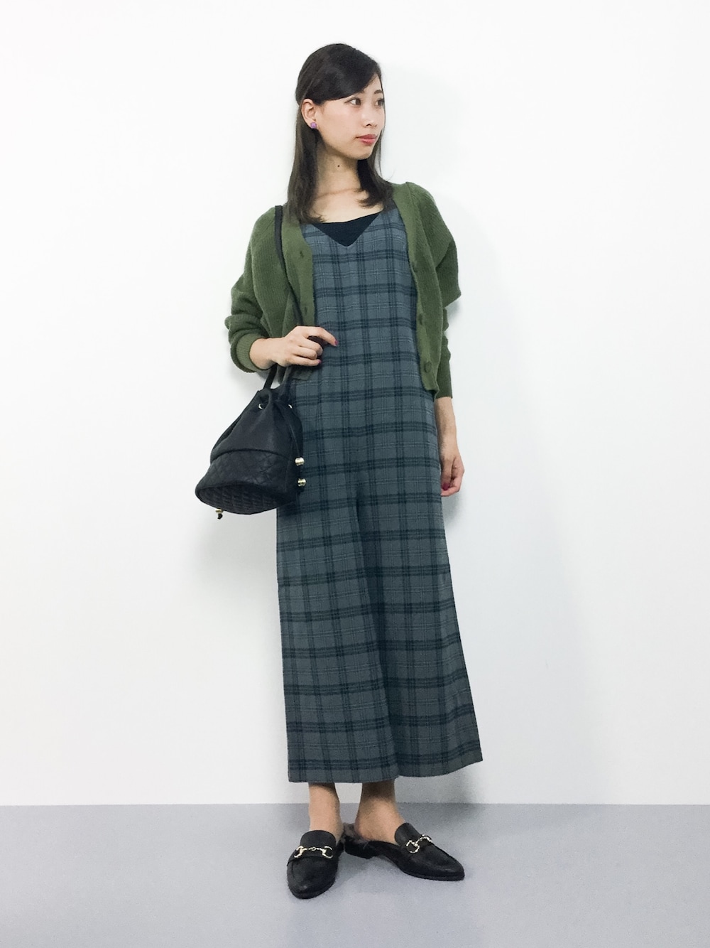 KIIのつなぎ/オールインワン「大人チェックオールインワン」を使ったコーディネート