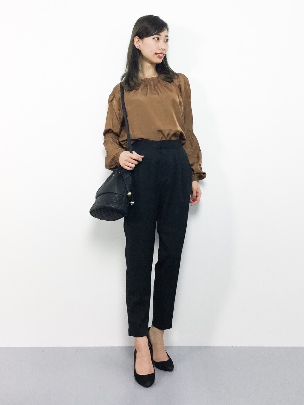 オトナコーデ◎ ハイネックのギャザーが可愛い ブラウスは、柔らかな生地で とても着やすいです(^_^)☆ テーパードパンツはすそに向かって 細くなっているので きれいなシルエットで穿いていただけます♩