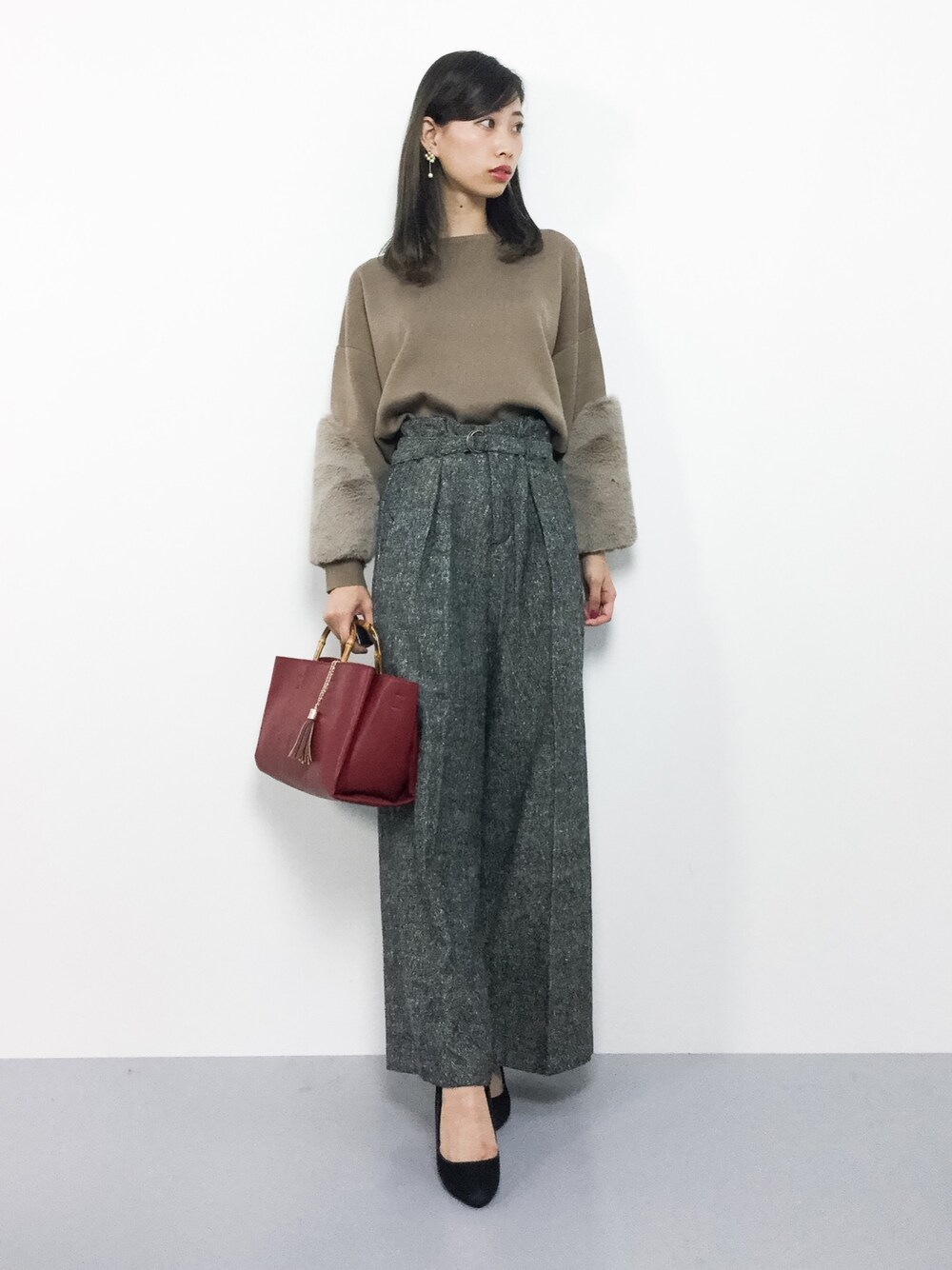 オトナラフコーデ◎ ゆるっとした袖とファーがポイント♩ フェミニンに着こなせます( ˆoˆ )/ トレンドのワイドパンツは ハイウエストでスタイルアップ♩ ゆったりした作りなので穿きやすいです(^_^)☆
