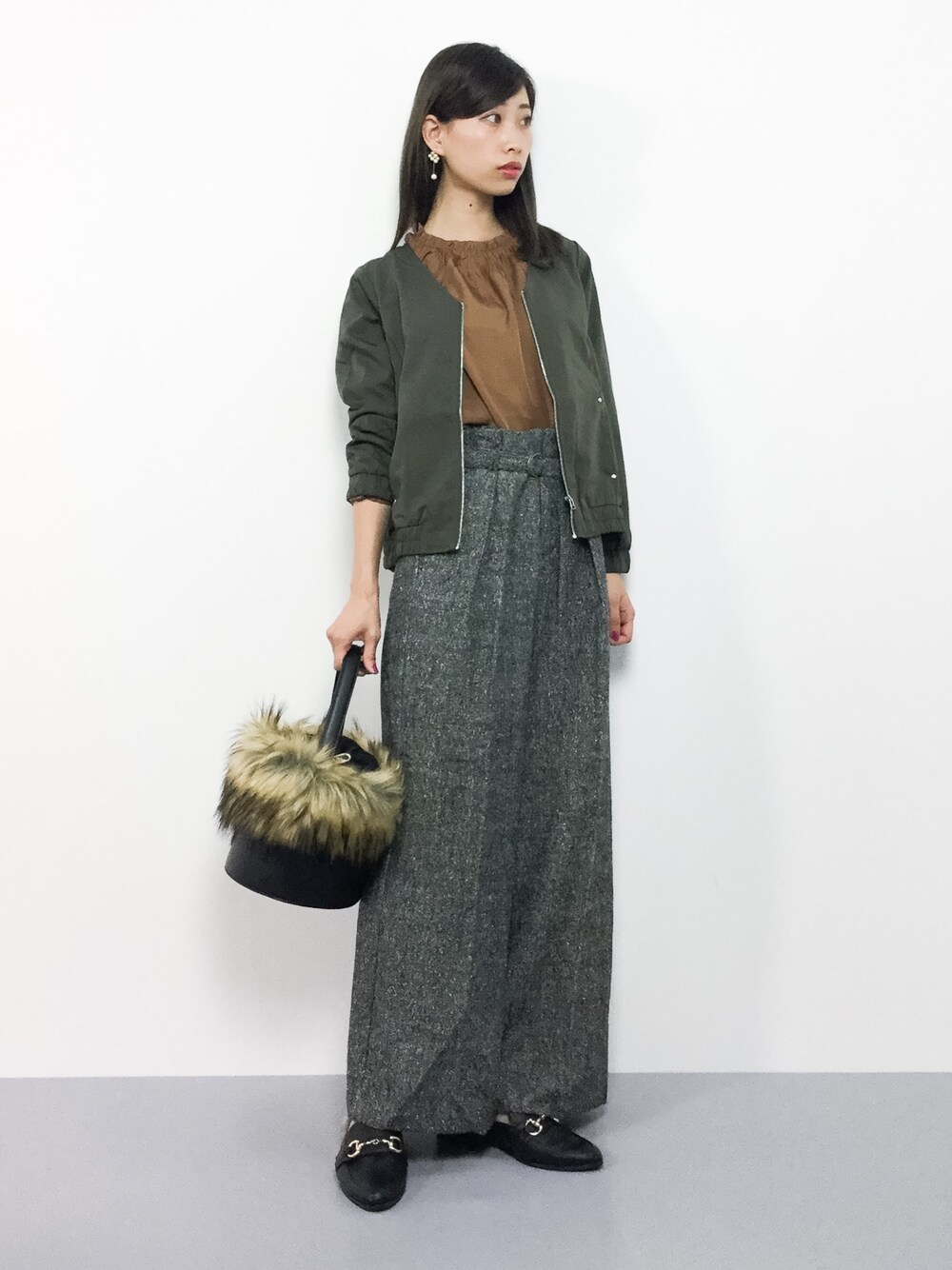 秋色コーデ◎ MA-1は定番の型なので重宝しそうです♩ シンプルなのでさまざなコーデに合いますよ(^_^)v パンツはゆったりとした作りで 生地が柔らかく穿きやすいです(^O^)