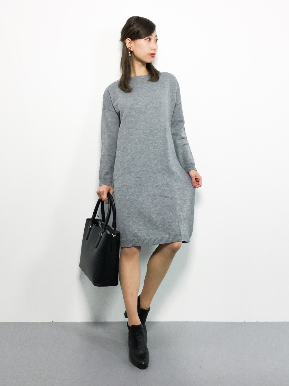 KIIのワンピース「クルーネックニットワンピース」を使ったコーディネート