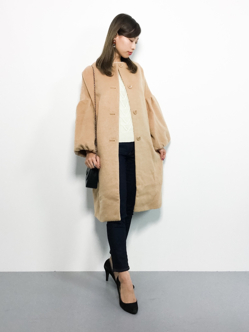 KIIのノーカラージャケット「ボリューム袖ノーカラーコート」を使ったコーディネート