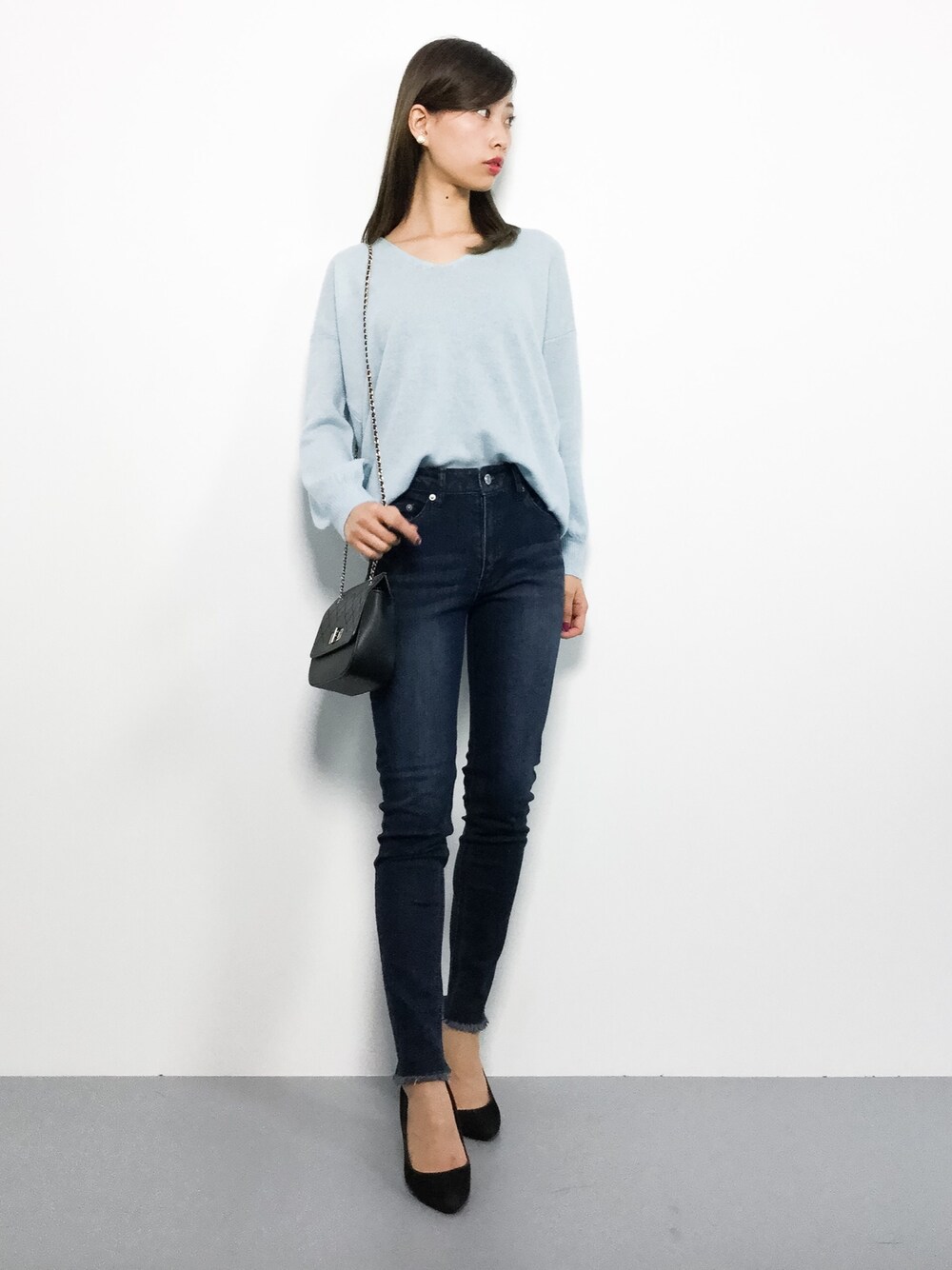 KIIのデニムパンツ「ストレッチデニムスキニーパンツ」を使ったコーディネート