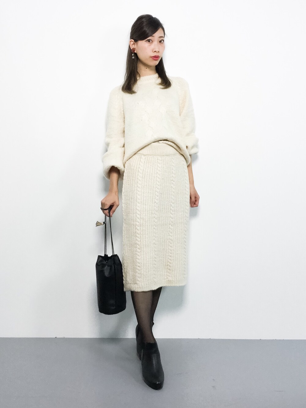 セットアップコーデ◎ ゆったりシルエットのケーブルニットは 上下別々でも着られるので、 コーデの幅が広がりそうです(^O^)