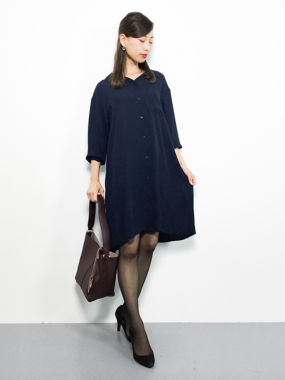 KIIのシャツワンピース「抜き衿バックプリーツシャツワンピース」を使ったコーディネート