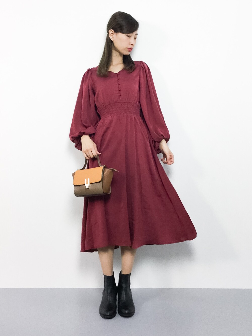 秋コーデ◎ ガーリーな雰囲気のボリューム袖ワンピースには サイドゴアブーツでカジュアルさをプラス♩ 締め付け感が無くラクな着心地ですよ(^O^)