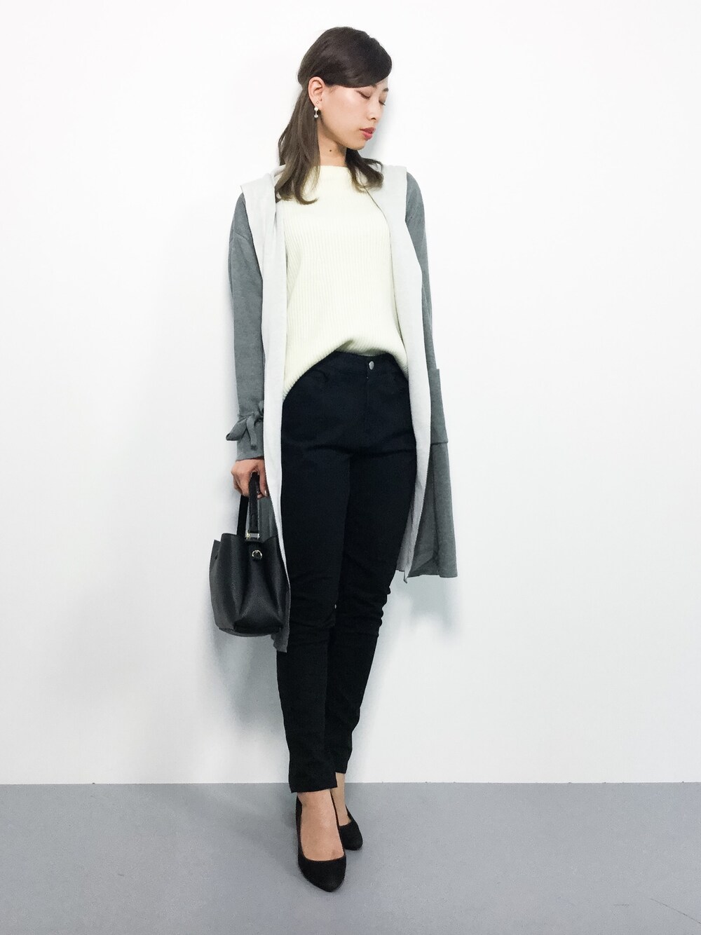 オフィスカジュアルコーデ◎ ゆったりしたカーディガンは腰周りを さりげなくカバー(^_^)☆