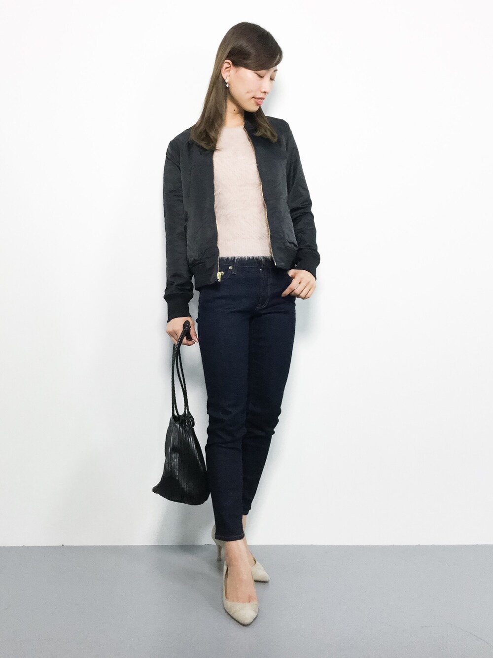 オトナカジュアルコーデ◎ ブルゾンは2wayでお使いいただける 優秀アイテム♪様々なスタイルに合わせて コーデを楽しめそうです(^O^) もちもちした生地のニットは柔らかく 着心地ばっちり(^_^)☆