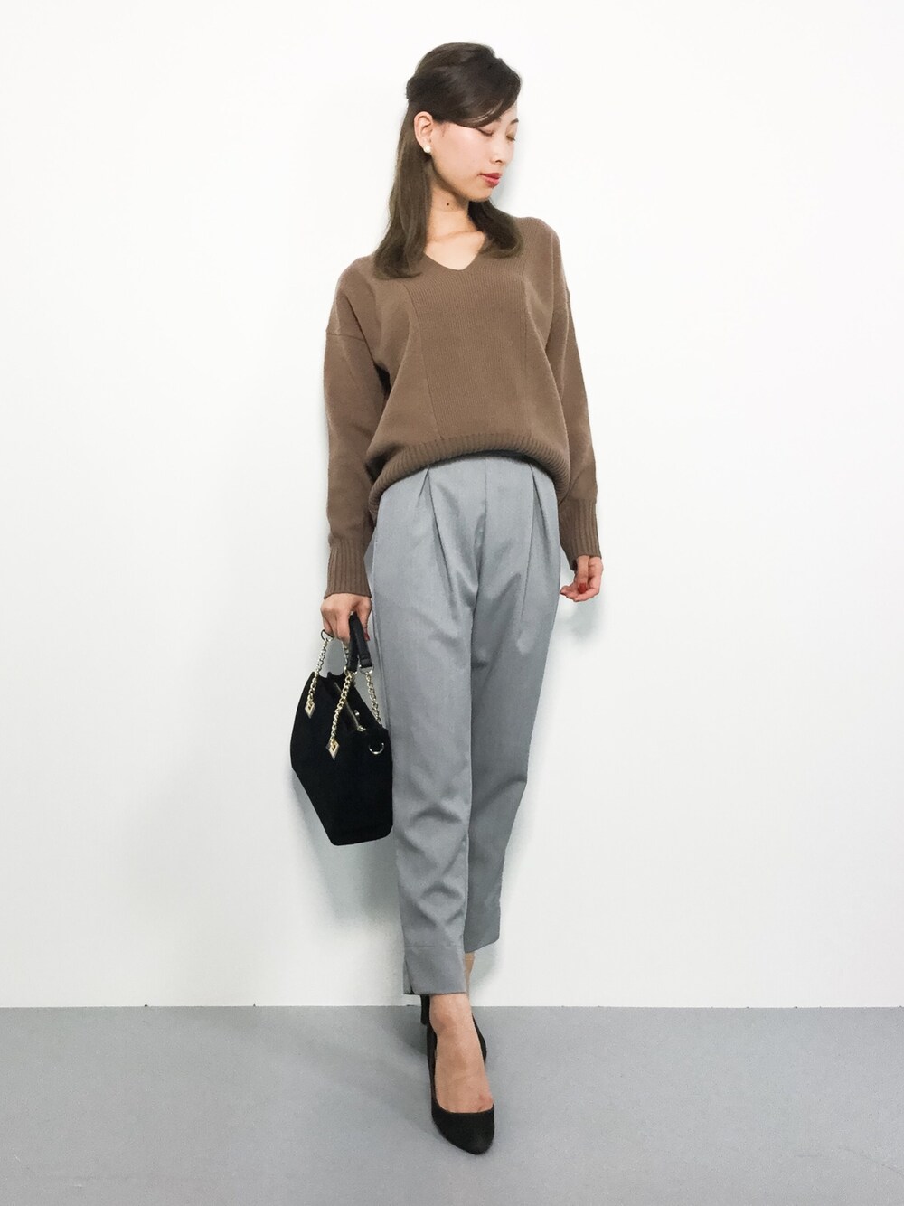 カジュアルコーデ◎ ゆるゆるシルエットのニットは ボトムスをスッキリさせてバランスよく♩ パンツはスッキリシルエットですが 細すぎないので穿きやすいですよ(^O^)