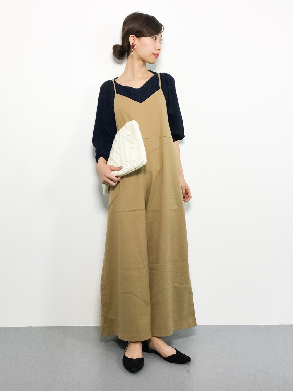 ゆるコーデ◎ オールインワンは合わせるインナーに よって全然違う印象のコーデに 仕上がります(^O^) 1枚で様々なコーデが組めますよ♪ トップスはゆるっとした袖がポイント♩ フェミニンに着こなせます( ˆoˆ )/
