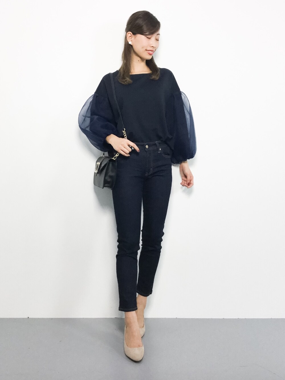 カジュアルコーデ◎ チュールのボリュームスリーブのトップスは、 可愛らしく女性らしいシルエットに♪