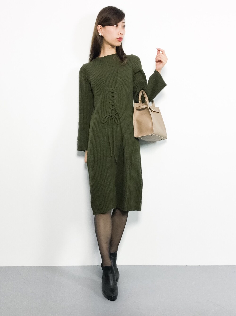 KIIのワンピース「ウエストマークリブニットワンピース」を使ったコーディネート