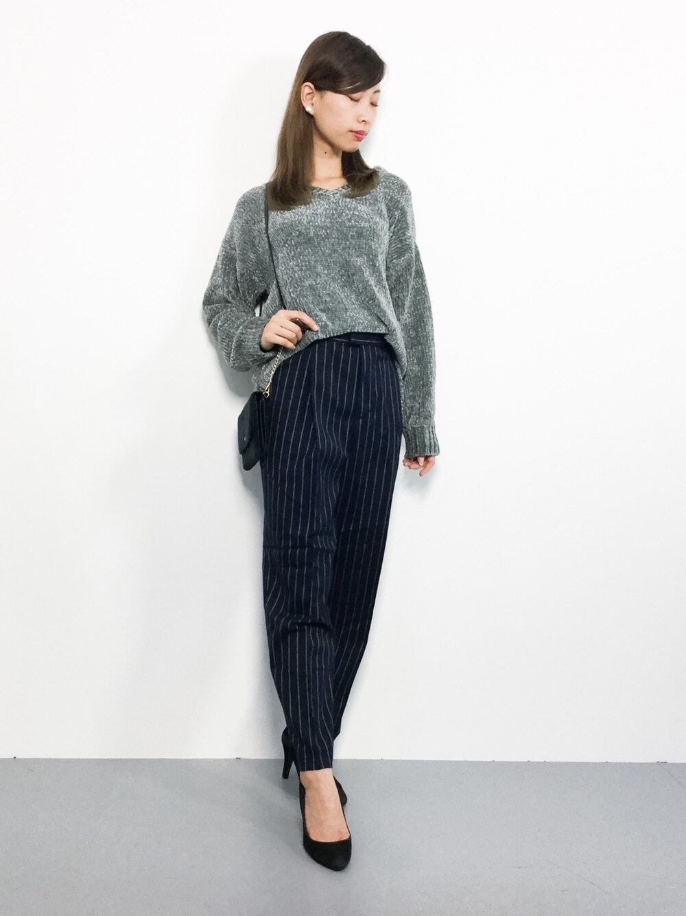 オトナ女子コーデ◎ もちもちした生地のニットは柔らかく 着心地ばっちり(^_^)☆ パンツはスッキリシルエットですが 細すぎないので穿きやすいですよ♩