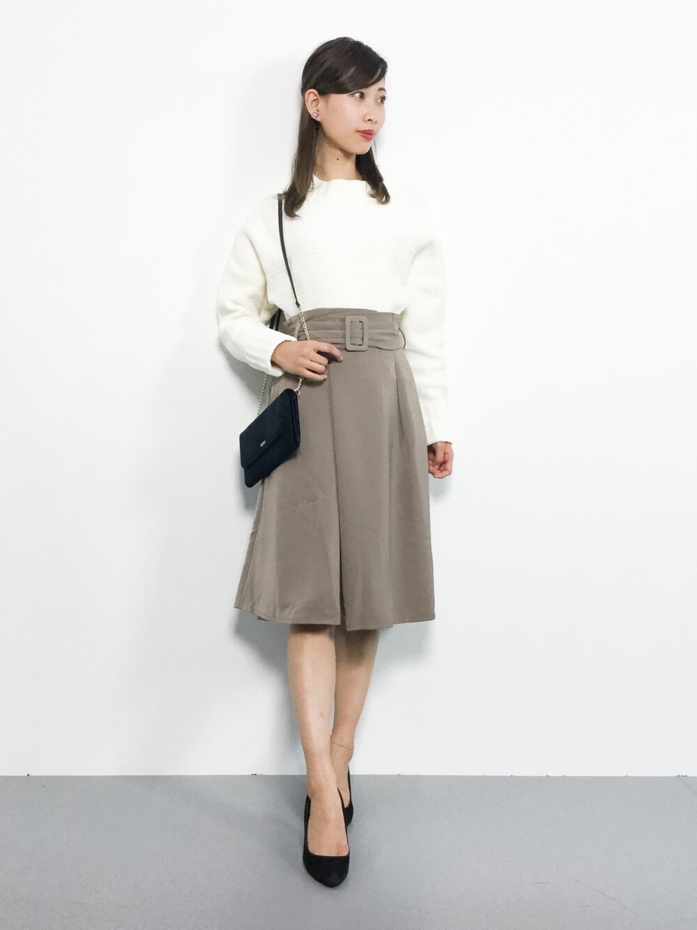 カジュアルガーリーコーデ◎ もちもちした生地のニットは柔らかく 着心地ばっちり(^_^)☆ サラっとした素材のフレアスカートは幅広い シーズンでお使いいただけます(^O^)