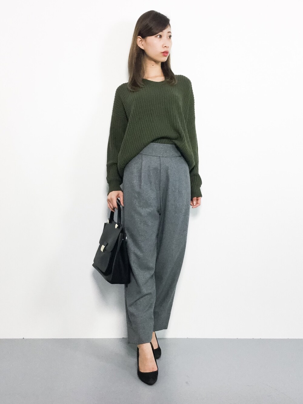 オトナカジュアルコーデ◎ ゆったりシルエットのニットは ボトムスを選ばずに着られるので 合わせやすいですよ★ パンツはゆったりとした作りで 生地が柔らかく穿きやすいです(^O^)