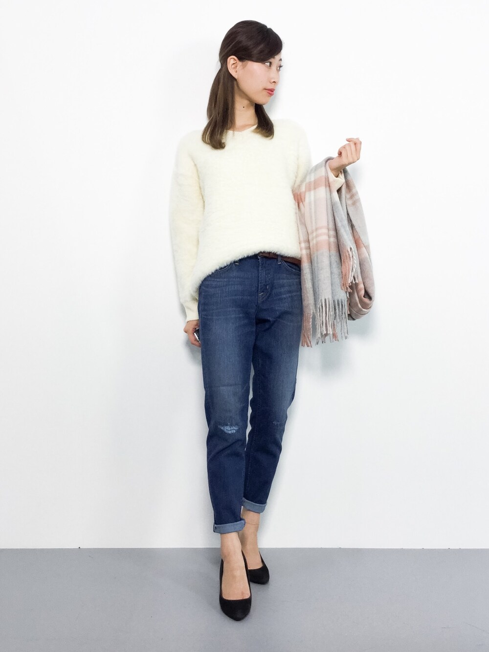 カジュアル冬コーデ◎ もちもちした生地のニットは柔らかく 着心地ばっちり☆ デニムは柔らかな生地で伸縮性ばっちり♩ オススメの1本です(^_^)☆