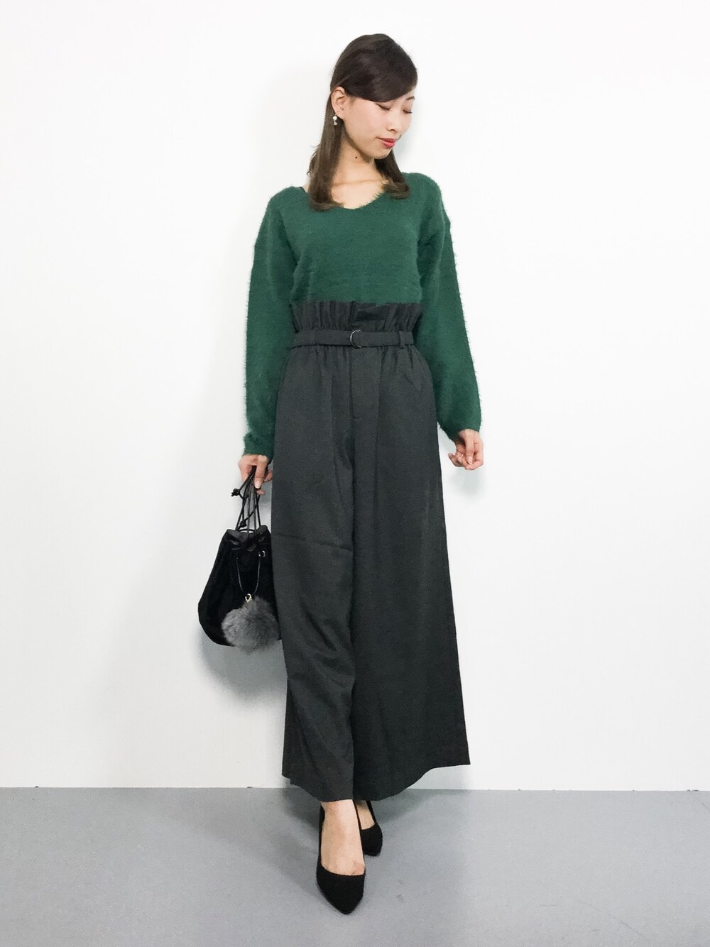 KIIのニット/セーター「Vネックシャギーカラーニット」を使ったコーディネート