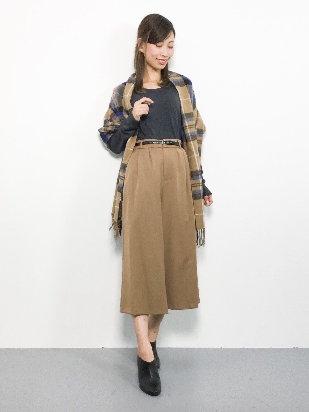 カジュアルコーデ◎ デイリーに着回しが効くシンプルニットは 様々なシーンで活躍間違いなし(^_^)☆ ふわっとした形のガウチョパンツは 下半身をさりげなくカバー♪
