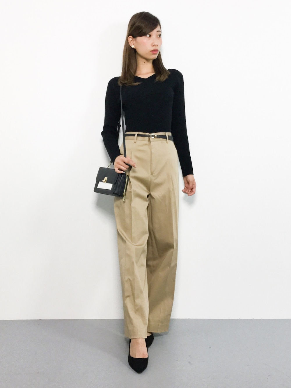オトナシンプルコーデ◎ オンオフに着回しが効くシンプルトップスは 様々なシーンで活躍間違いなし♪ チノ素材でカジュアルに穿けるパンツは シンプルで使いやすい一枚です♩ 程よいボリュームで穿きやすいです(^_^)☆