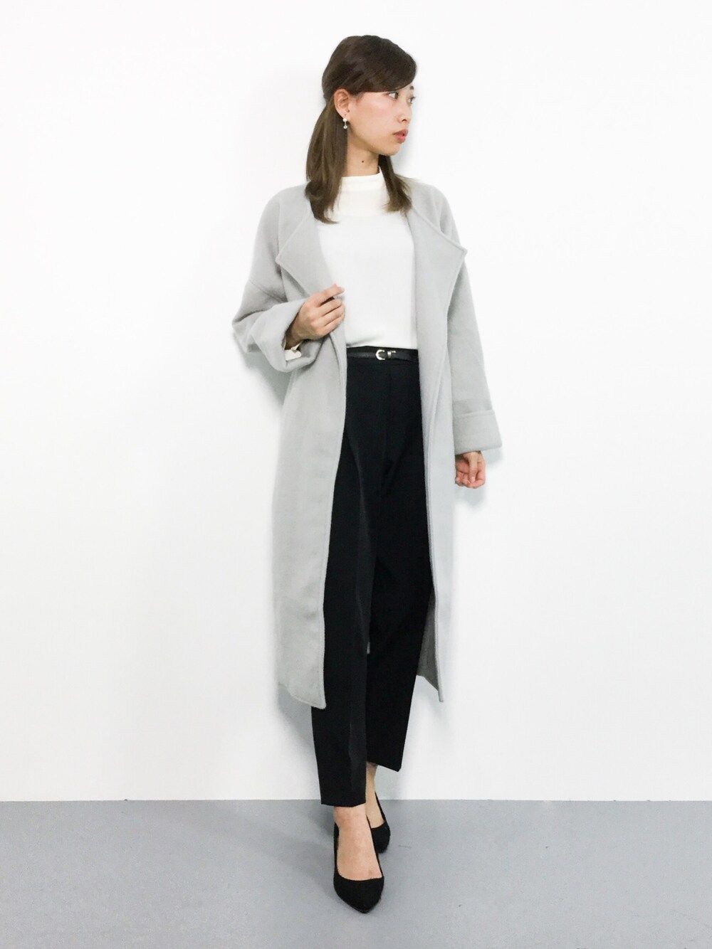 KIIのノーカラージャケット「シャギーニットノーカラーコート」を使ったコーディネート