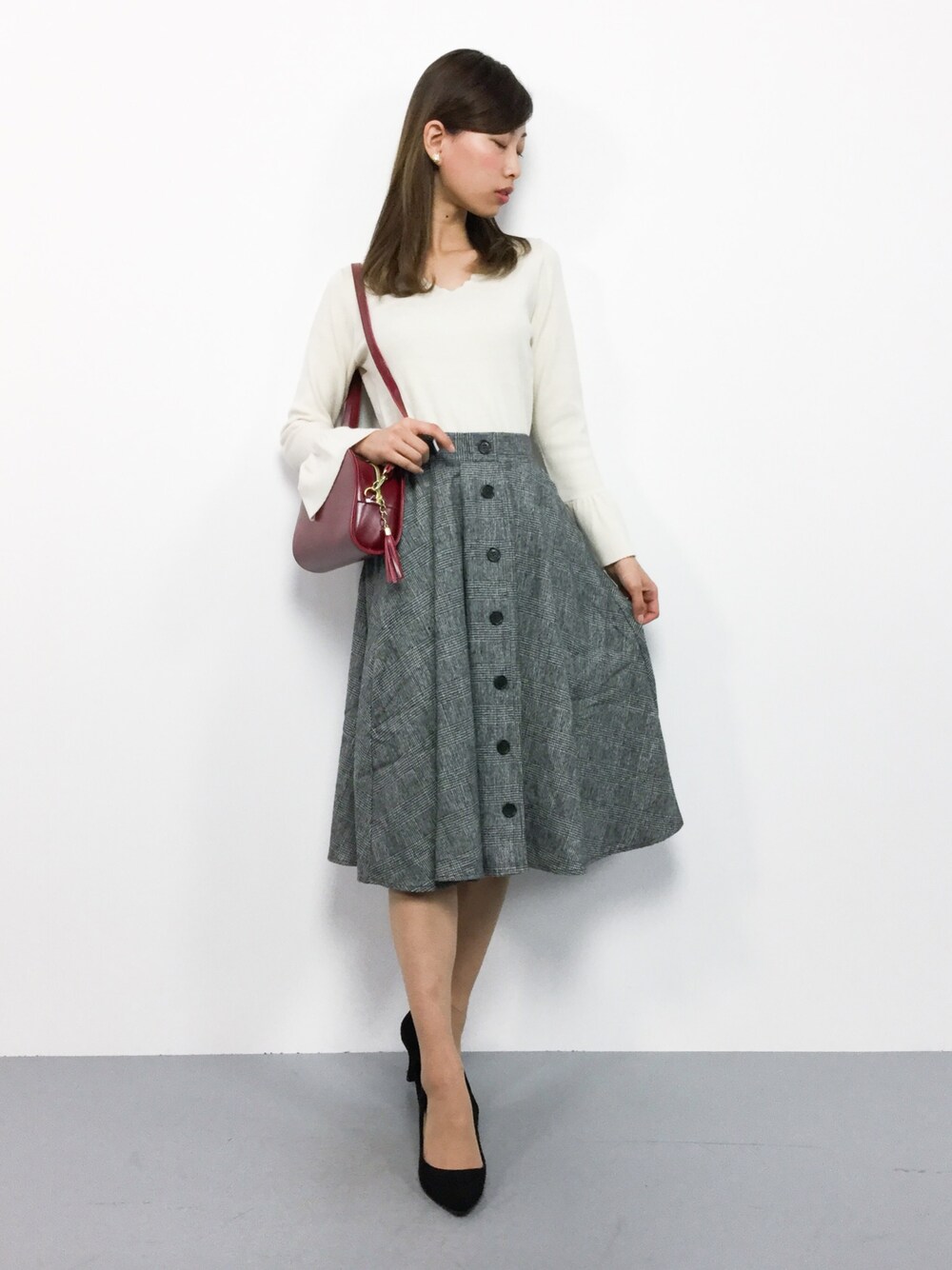 オトナ女子コーデ◎ フリルスリーブのトップスは、 可愛らしく女性らしいシルエットに♪ スカートは柔らかな生地で 幅広いシーズン使える優秀アイテム♪( ´▽`)