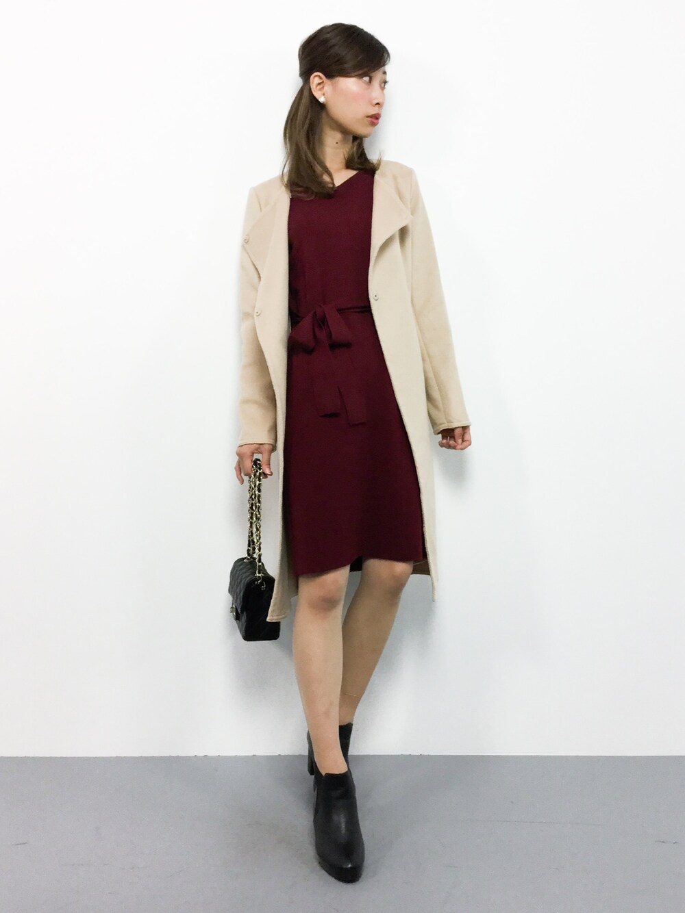 オトナきれいめコーデ◎ シンプルですが、女性らしいシルエットの ワンピース(^O^)♪ 柔らかな生地で着心地が良いです♪ デートや女子会にぴったりのアイテム(^_-) コートは使いやすい形でどんなコーデにも 合わせやすいです♪( ´▽`)