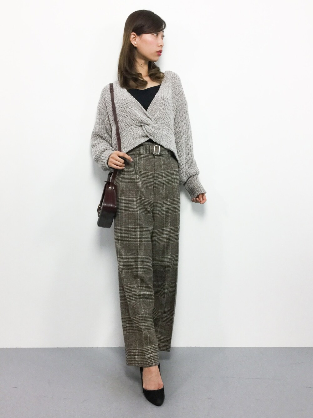 ゆったりワントーンコーデ◎ ゆるシルエットのベロアニットは ボトムスを選ばずに着られるので 合わせやすいですよ★ パンツはゆったりとした作りで 生地が柔らかく穿きやすいです(^O^) グレンチェック柄でトレンドアイテムです♩