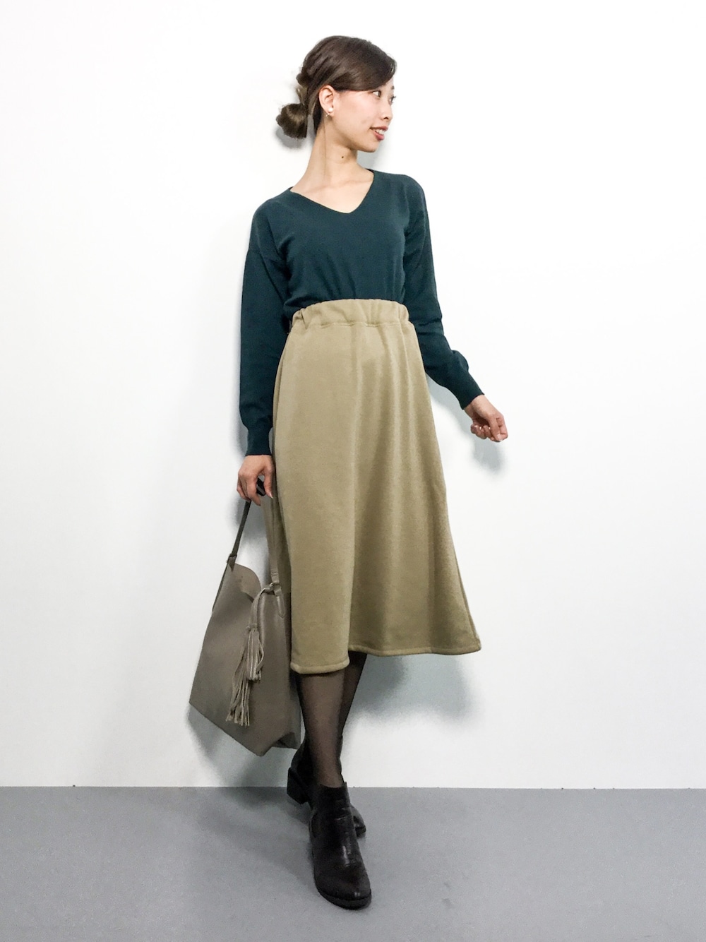 カジュアル秋コーデ◎ オンオフに着回しが効くシンプルニットは 様々なシーンで活躍間違いなし(^_^)☆ 柔らかな生地のフレアスカートは歩くたびに裾が 揺れてとっても可愛らしくフェミニン♪