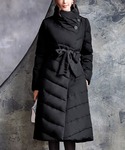KIIのダウンジャケット/コート「静電気防止 洗える | ハイネックアシンメトリーダウンコート | レディース アウター 羽織 体型カバー 保温 暖かい ロング丈 ロングコート ダウンジャケット リボン ベルト レザーベルト リボンベルト」を使ったコーディネート