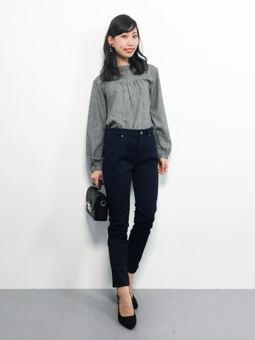 KIIのシャツ/ブラウス「グレンチェックフリルハイネック長袖ブラウス」を使ったコーディネート