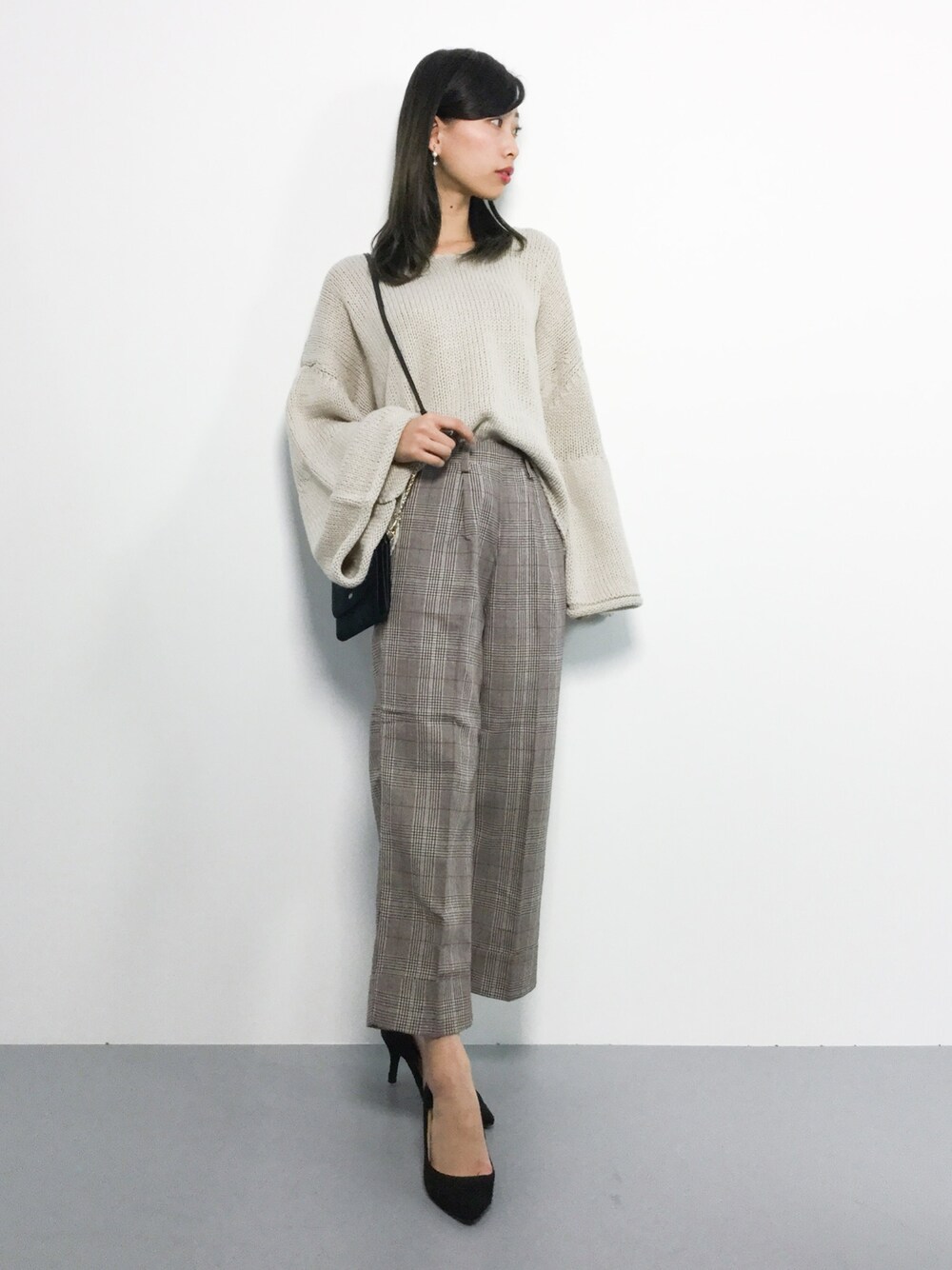 ラフコーデ◎ ニットはゆるっとした袖がポイント♩ フェミニンに着こなせます( ˆoˆ )/ パンツはゆったりとした作りで 生地が柔らかく穿きやすいです(^O^) グレンチェック柄でトレンドアイテムです♩
