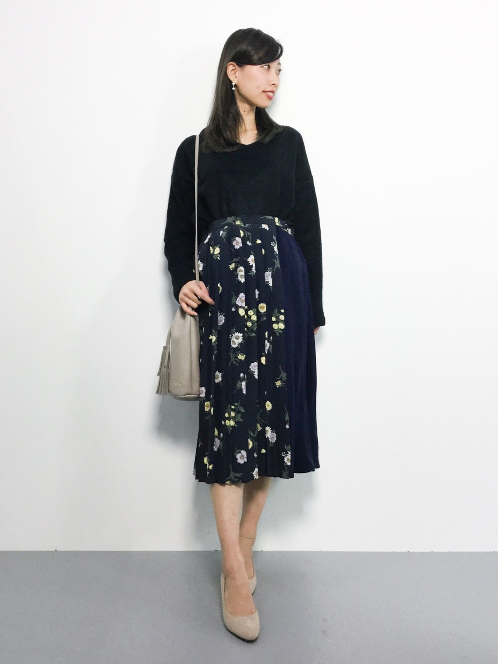 オトナシンプルコーデ◎ デイリーに着回しが効くシンプルニットは 様々なシーンで活躍間違いなし(^O^) スカートは柔らかな生地で 幅広いシーズン使える優秀アイテム♪