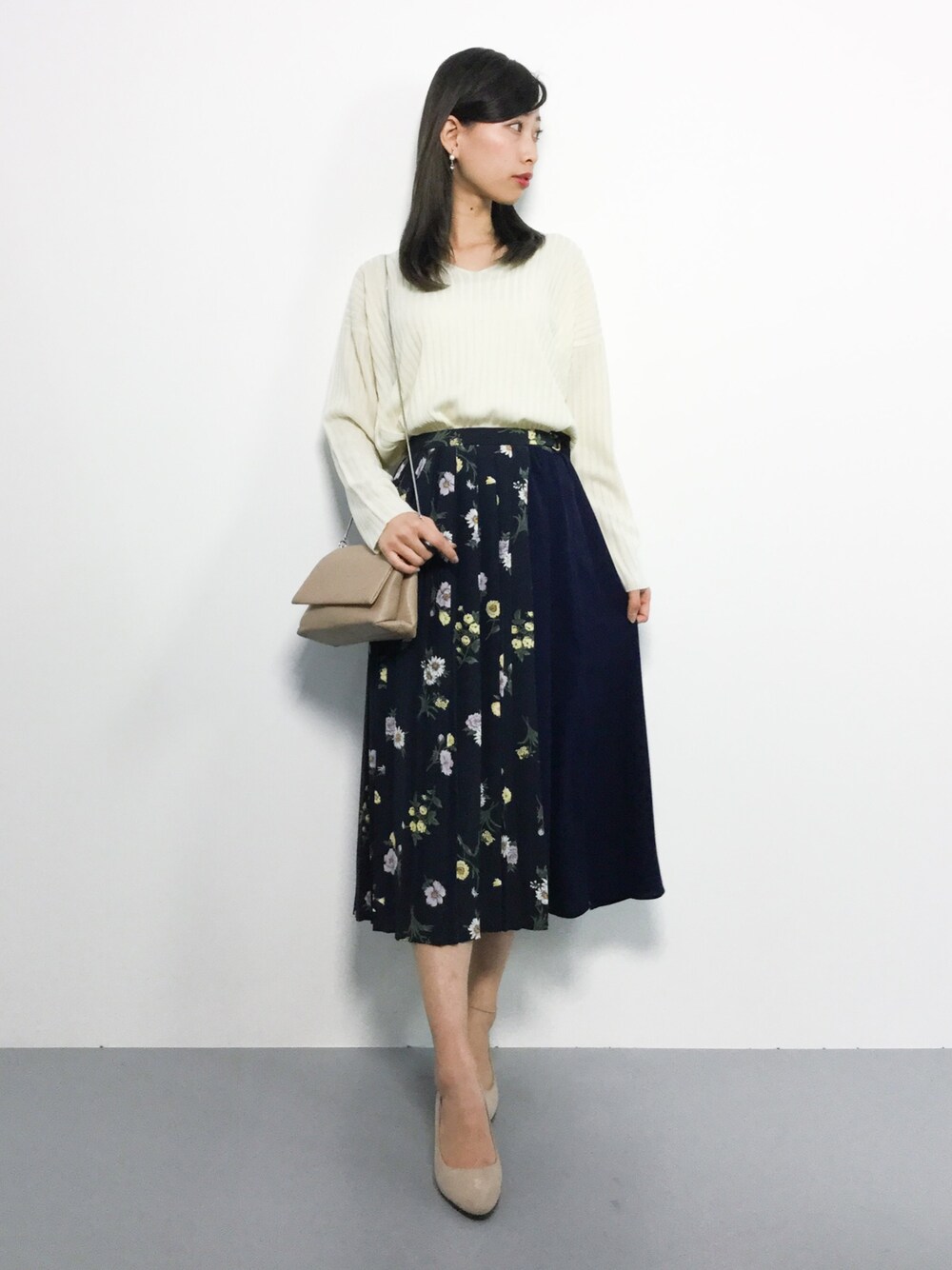 オトナフェミニンコーデ◎ オンオフに着回しが効くリブニットは 様々なシーンで活躍間違いなし♪ スカートは柔らかな生地で 幅広いシーズン使える優秀アイテム(^O^)