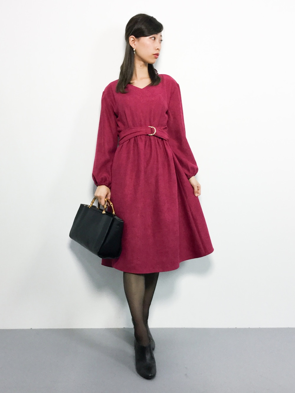 KIIのワンピース「ウエストサッシュベルト付ワンピース」を使ったコーディネート