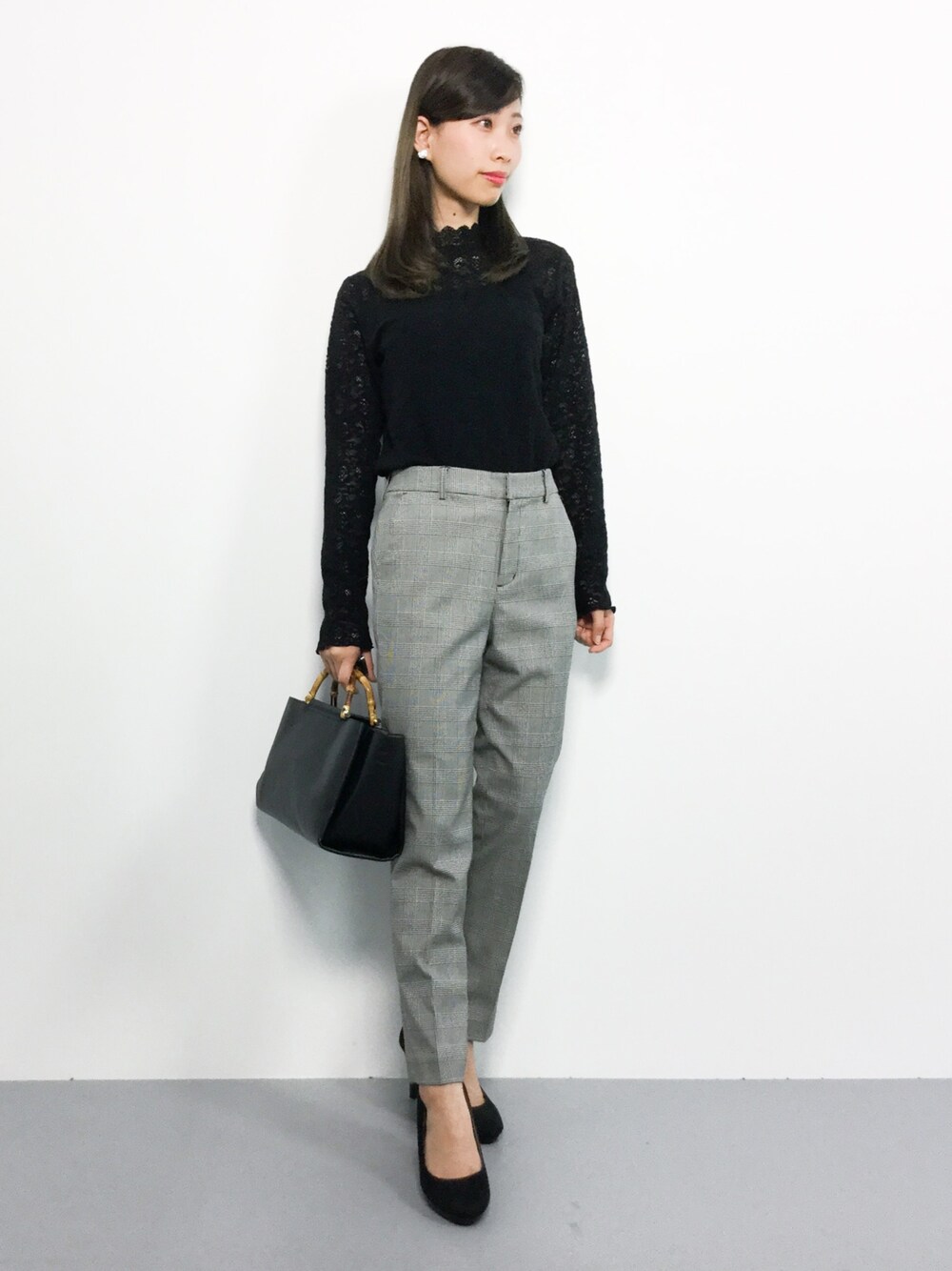 オトナシンプルコーデ◎ トレンドのレーストップスは シンプルな形で着回しやすさばっちり( ´ ▽ ` ) パンツはすそに向かって細くなっているので きれいなシルエットで穿いていただけます♩