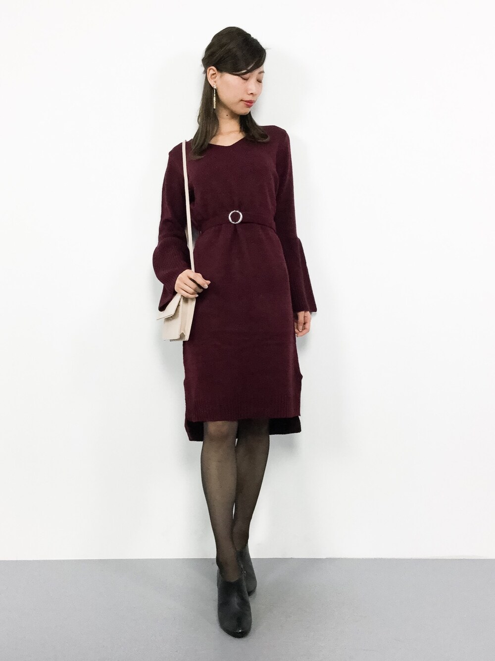 KIIのワンピース「ベルト付き フレア袖/ベルスリーブニットワンピース」を使ったコーディネート