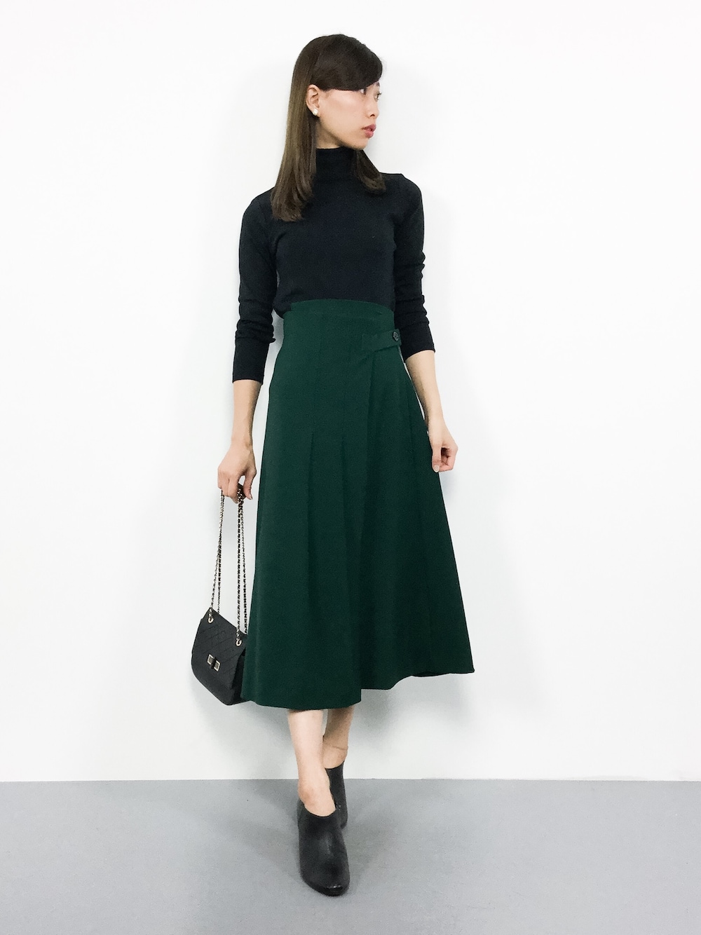 オトナコーデ◎ タートルネックのニットは身体に フィットしますが伸縮性がしっかりあるので 窮屈感はありません♩ スカートは幅広いシーズン使える優秀アイテム♪