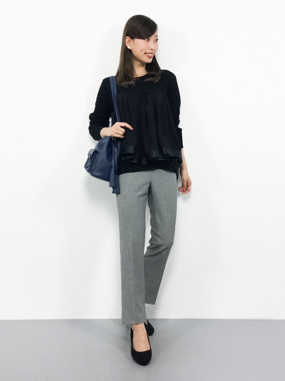 オトナ女子コーデ◎ ペプラムデザインで女性らしい シルエットに(^_^)☆ パンツはスッキリとしたシルエットですが、 伸縮性がしっかりとあり、 とても穿きやすいです(^^)
