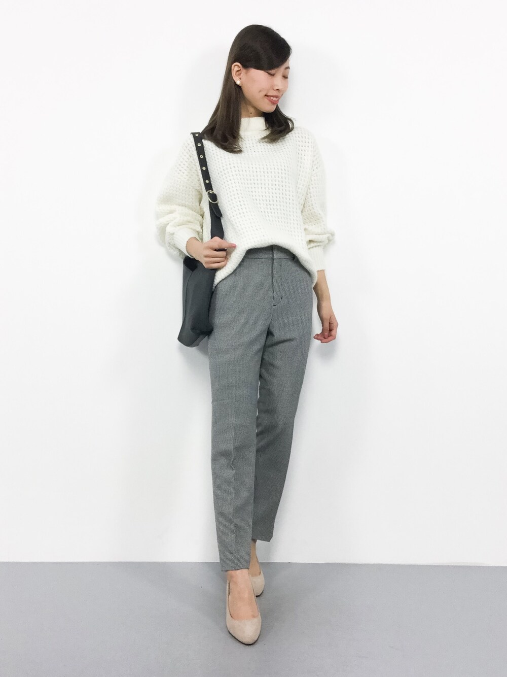 オトナシンプルコーデ◎ ゆったりシルエットのニットなので、 タイトなボトムスを合わせて バランス良く(^O^) パンツはスッキリとしたシルエットですが、 伸縮性がしっかりとあり、 とても穿きやすいです(^_^)☆