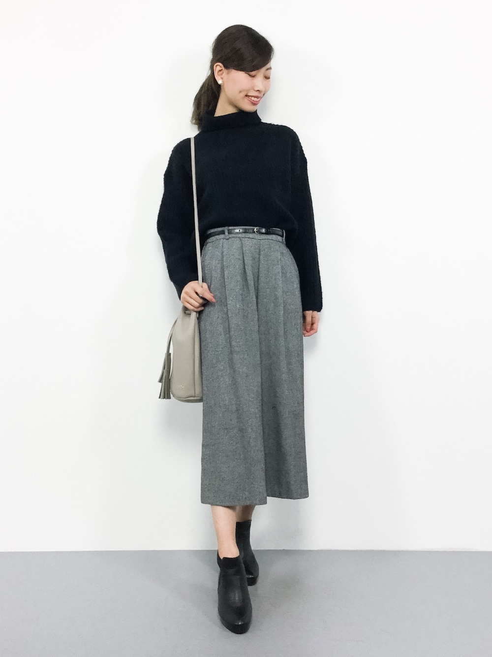 オトナカジュアルコーデ◎ デイリーに着回しが効くニットは 様々なシーンで活躍間違いなし(^_^) ふわっとした形のガウチョパンツは 下半身をさりげなくカバー♪