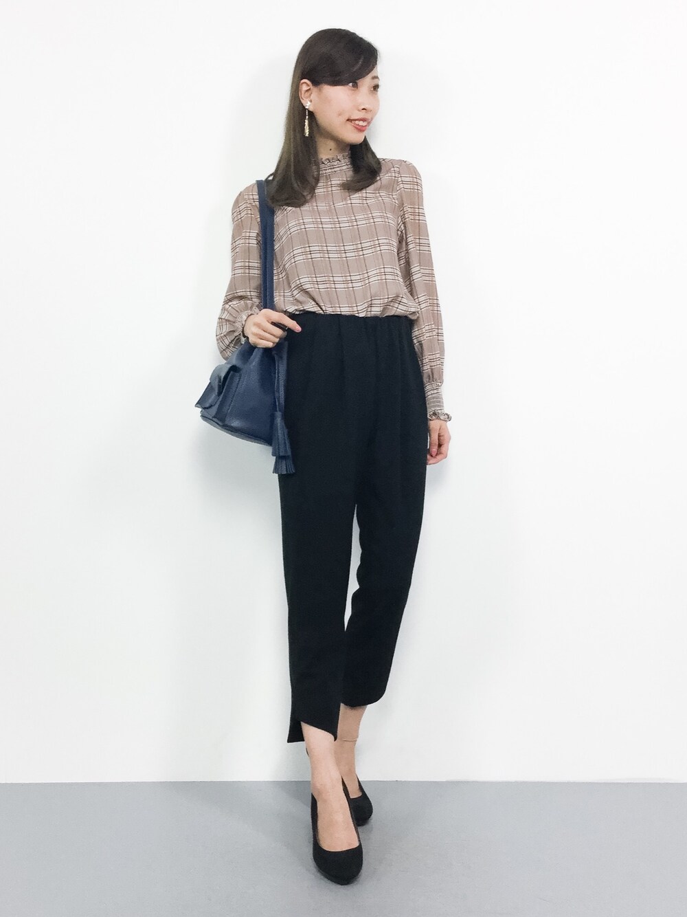 シンプル秋コーデ◎ ハイネックのフリルが可愛い ブラウスは、柔らかな生地で とても着やすいです☆ パンツはスッキリとしたシルエットですが、 伸縮性がしっかりとあり、 とても穿きやすいです(^_^)☆